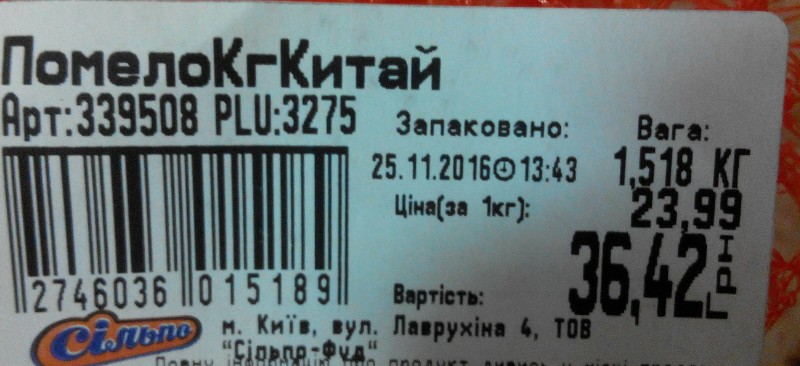 Купив Помело, на смак наче смачне, але кістки усі недозрілі. Журба.