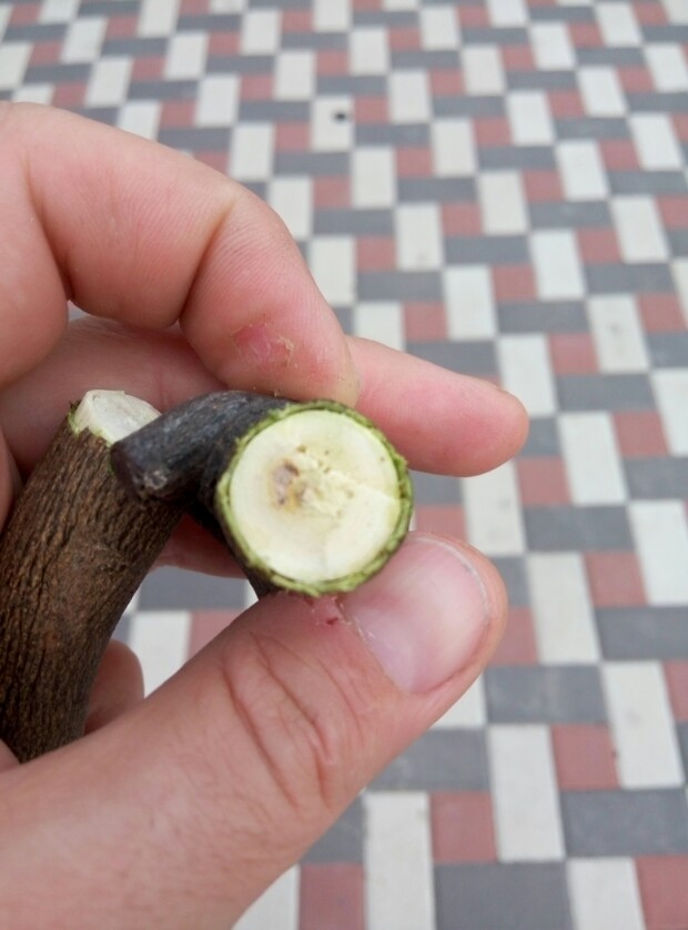 Corrado писал(а):Дикий мандарин почав скидати листя і всихають гілки від верху. На зрізі ось такі плями в стовбурі дерева. Я так розумію це мальсеко?