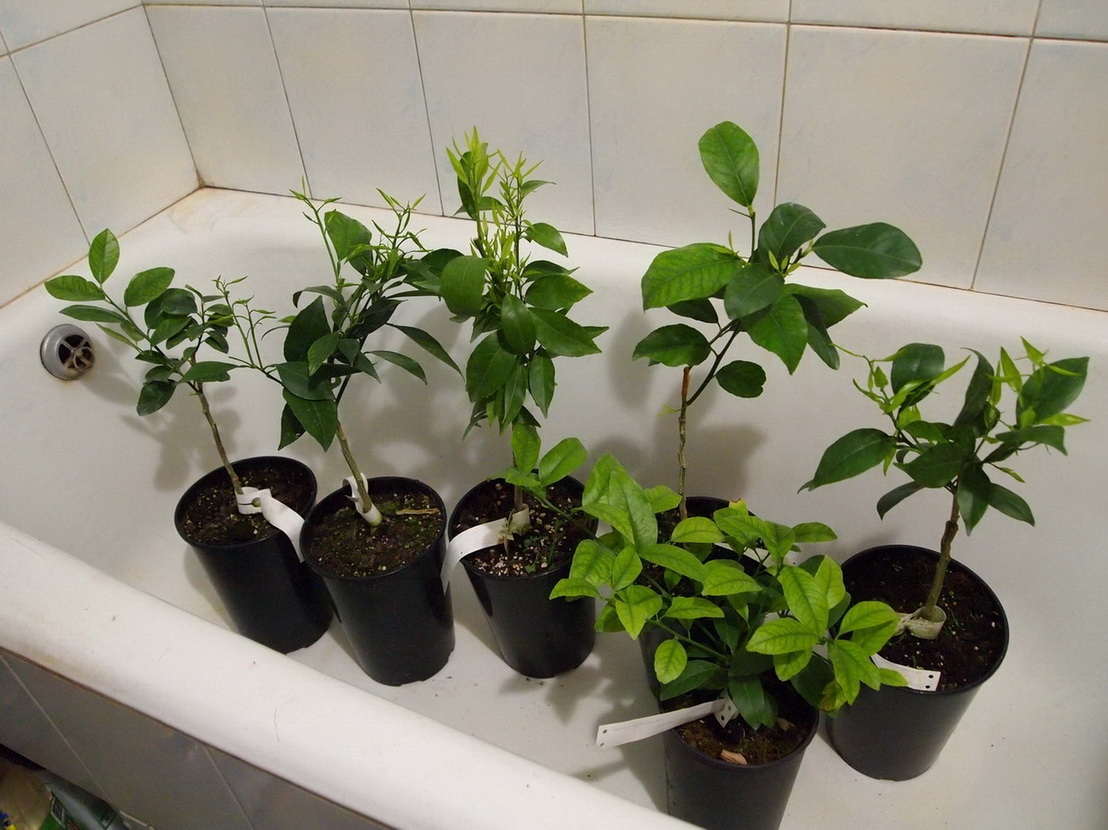 В общих чертах о заказе. Чех как и в прошлый раз все приготовил заранее, наш человек только загрузил и сверил со списком наименования и количество. Чинотто приехали обычные, хотя в заказе должны были быть вариегатные. Азимина не маркирована буквами "V", "S" и "M", поэтому пришлось выбирать по росту. На некоторых растениях был замечен клещ, поэтому предварительный карантин с обработкой от клеща просто необходим. На некоторых бирках с трудом разобрал что там написано, на некоторых вообще от руки написано (в часности Myrtifolia).