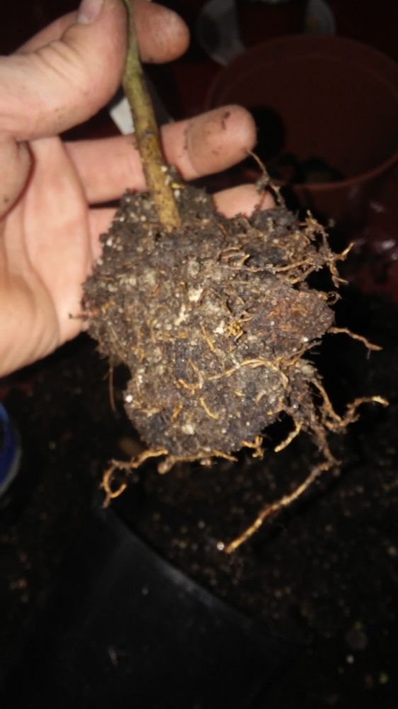 Чехи засунули в большой горшок растение с крошечной корневой, да и корневая на вид была не ахти. Пересадил в маленький горшок и пролил радифармом. Надеюсь на успех.