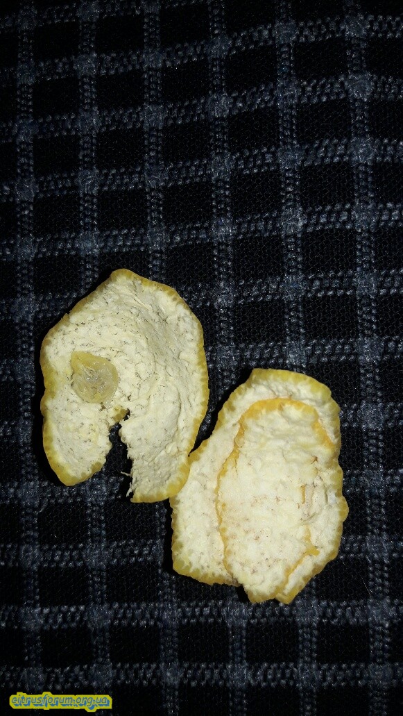 Что ещё для меня подтверждает родство с кумкватом - количество долек в трёх съеденных плодах было от 4 до 6, в то время как у кумквата 4, у мандарина обычно 9-10.