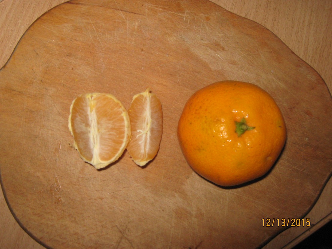 - вкус кислый с горчинкой. Кислота как у Мейера, горчинка раза в два послабее чем у горьких грейпов. На фото кантонец расчищен, рядом грузинский Уншиу для сравнения.