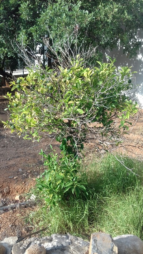 На Крите, и здесь в Елоунде в частности, конечно могут расти нормально цитрусовьІе. И я в нескольких частньІх дворах видел достойньІе єкземплярьІ. Вот например: