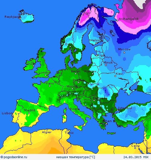 Карты погоды "рисуют" заморозки на 22-24 марта: