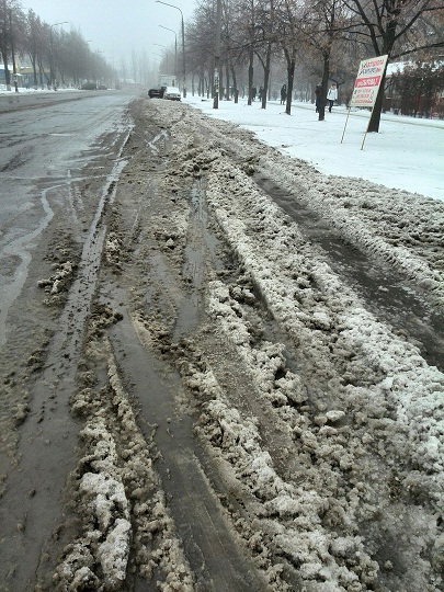 У нас вчера метель, снега насыпало, не так что б много, но на падало, и вечером бац! дождь ! обледенение