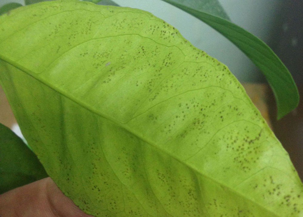 vikprint писал(а):Подарили лимон из косточки. Дереву 5-7 лет. На листьях маленькие точки, похожие на яйца насекомых или грибок. Помогите пожалуйста найти причину и лечение. На молодых листьях нет. только на прошлогодних.