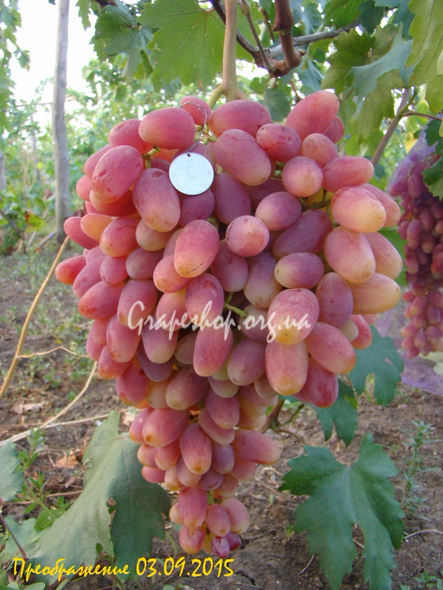 Возвращаюсь к вопросу окрашивания розовых сортов. Благо виноград уже продан, можно немного подвести итоги. Так вот в этом посте выложу фото "Преображения", которое заказали на свадьбу и висело оно аж до сентября. Важный момент - эта гроздь большую часть дня находилась в тени.