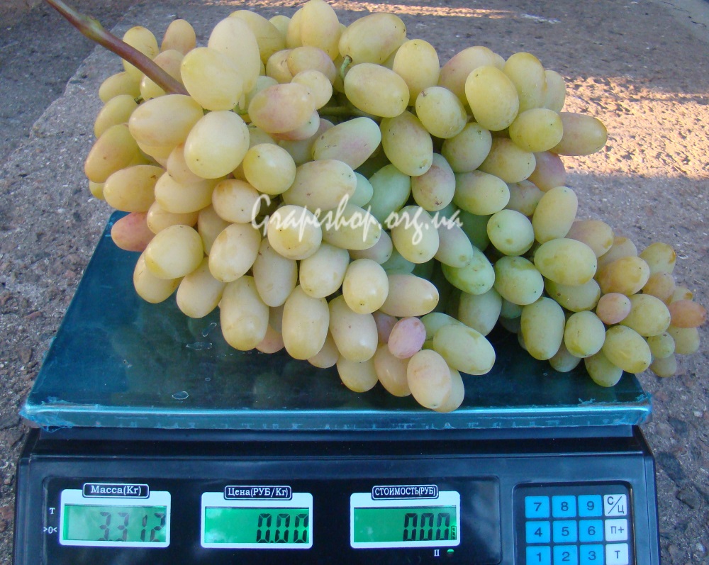 К вопросу о лучших сортах. Не очень много сортов способны выдавать грозди как Крайновское Преображение. Точнее у меня, это Юбилей Новочеркасска. На солнышке не захотел окрашиваться в розовый цвет и стал просто кремовым с маленькой розовинкой.