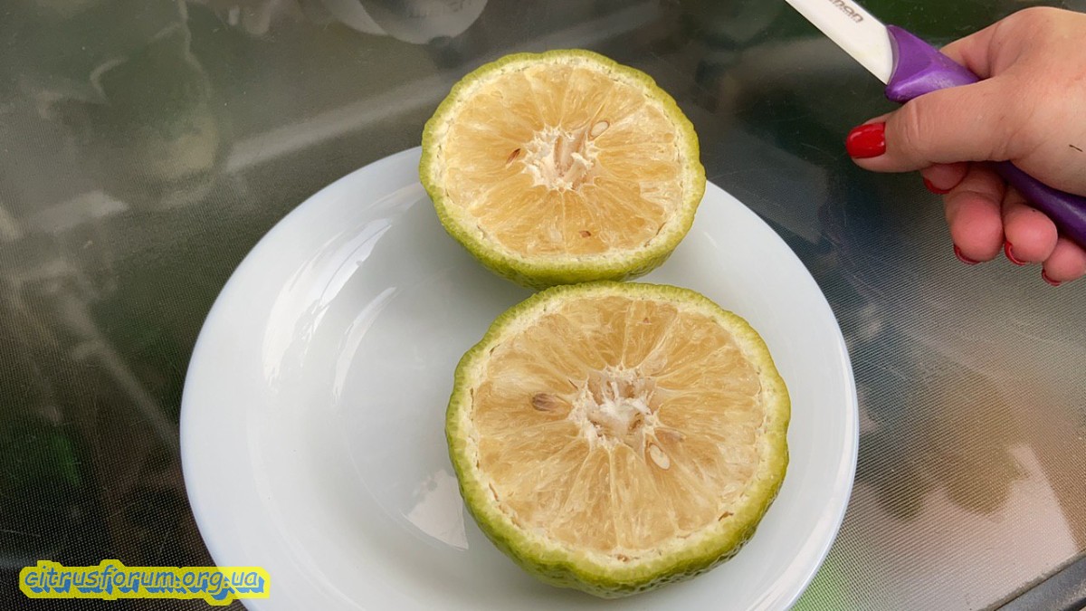 Плод немного суховат, но сладкий, вкусный. Вероятно ему было сухо, нужно увеличить горшок. Плодошонение первое.