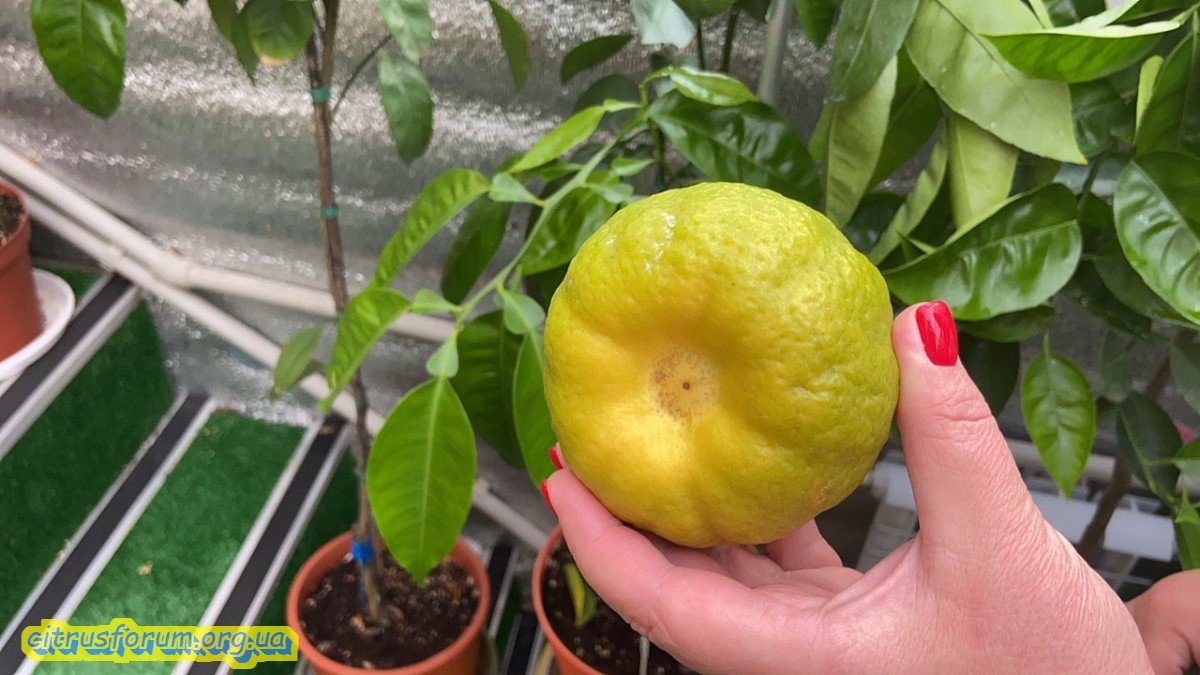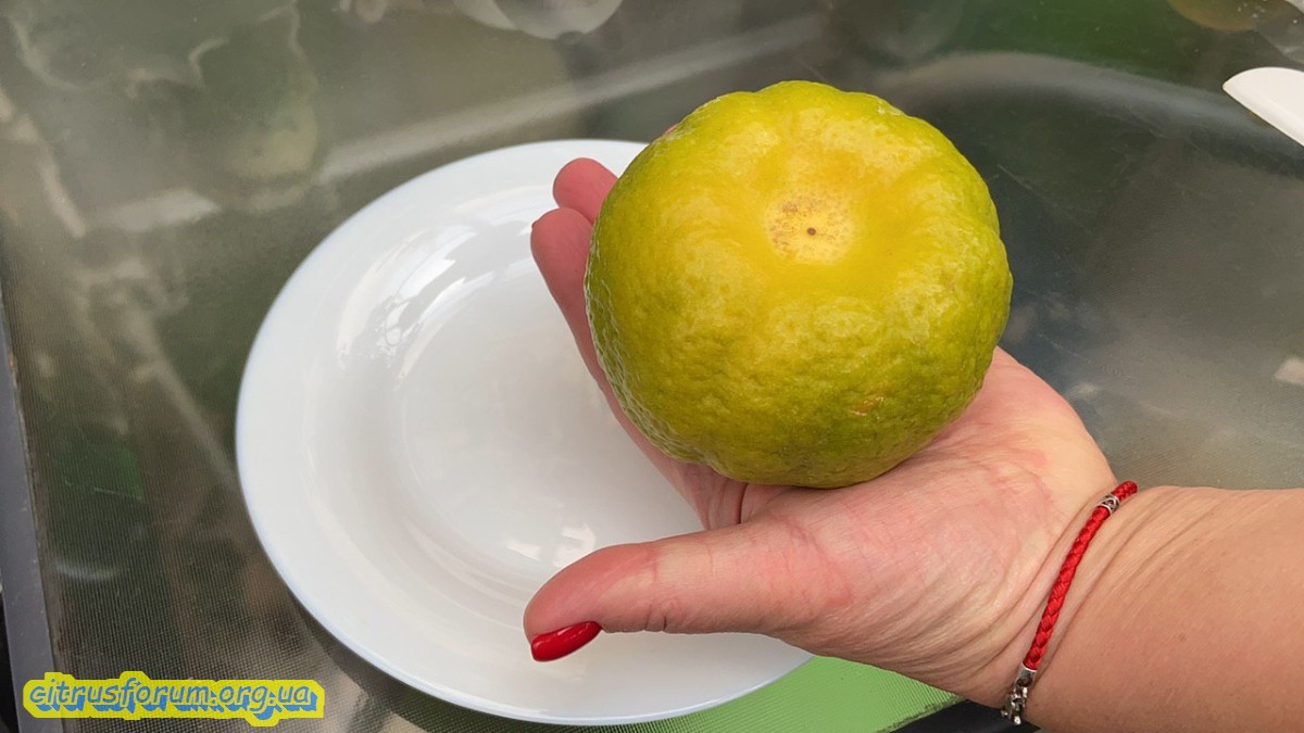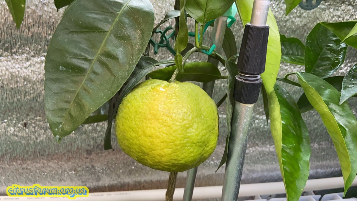 Плод немного суховат, но сладкий, вкусный. Вероятно ему было сухо, нужно увеличить горшок. Плодошонение первое.