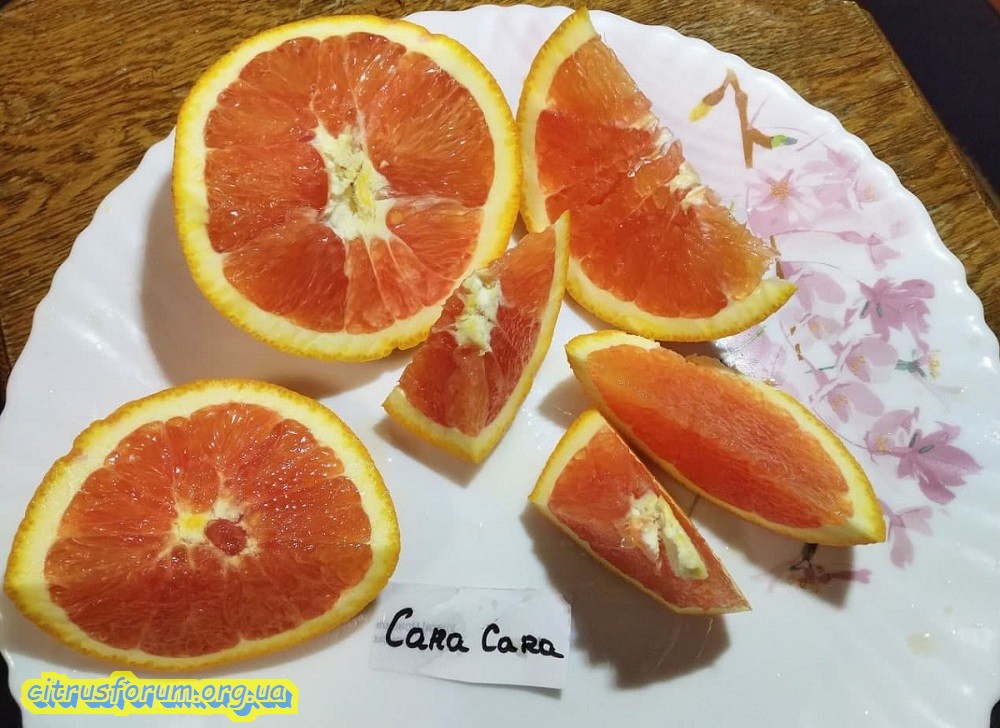 Вага плодів 300-350г., смак такий як тут описують, досить цікавий несолодкий, але без кислоти, з нотками грейпфрута, але на грейпфрут схожий тільки кольором, а по формі на Вашингтон навел.