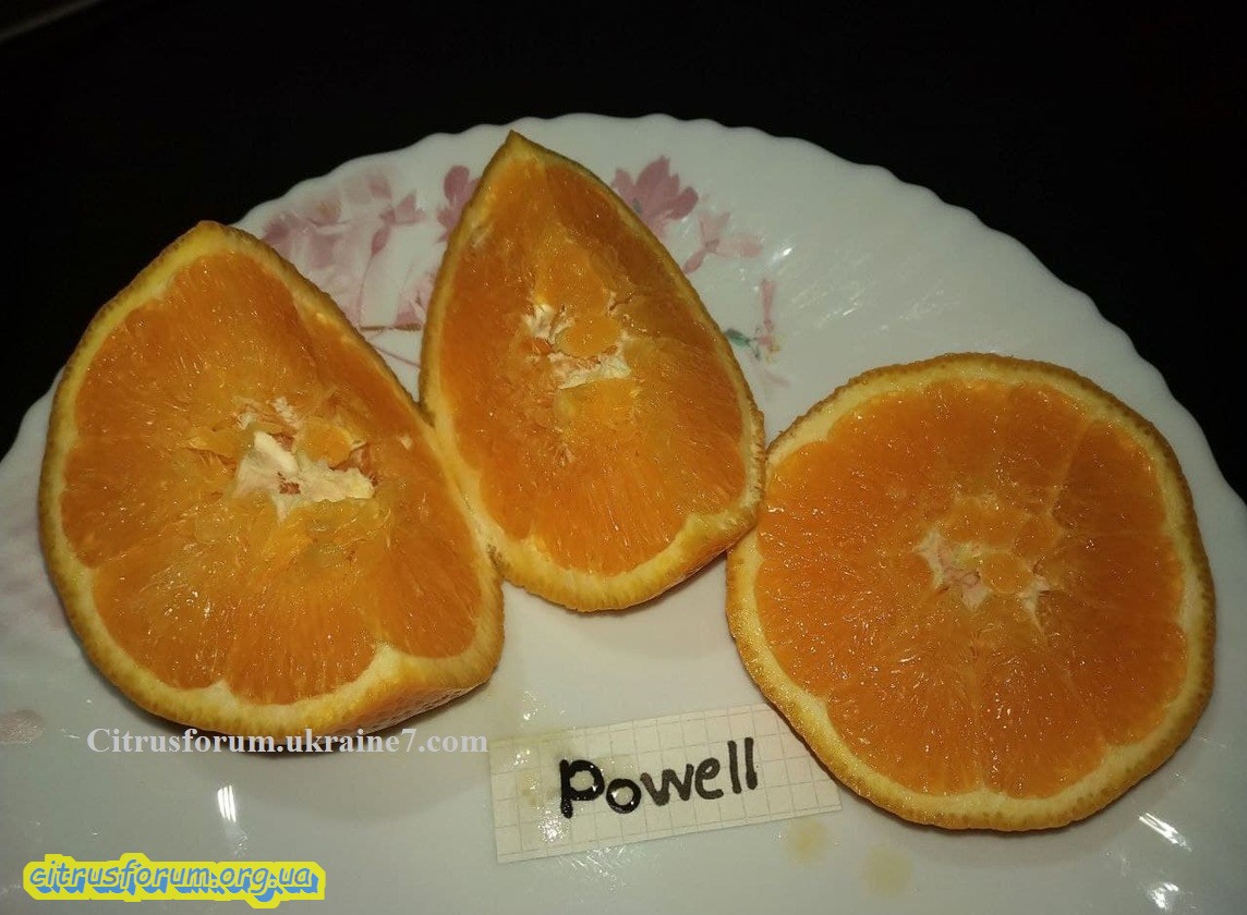 Powell апельсин. Дуже солодкий, без кислинки, сегменти не відчуваються. Смак схожий на Washington і Navelina.