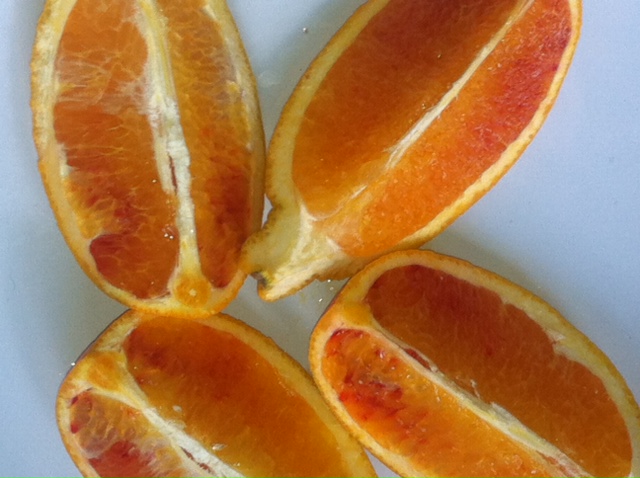 Часто встречаю у цитрусоводов отзывы по поводу не желания зацветать Тарокко нуцелярного. У меня почему-то все наоборот - цветёт стабильно с самого начала приобретения (3 года назад), охотно завязывает и вынашивает плоды. Дерево тинторовское, подвой, вероятнее всего, макрофила. Вкус у плодов достойный - классический удачный пигментированный апельсин. Я не выдерживала, и срывала немного раньше срока урожай, давая "дорогу" новым завязям, от этого мякоть не до конца окрашивалась, однако уже была очень вкусной.
