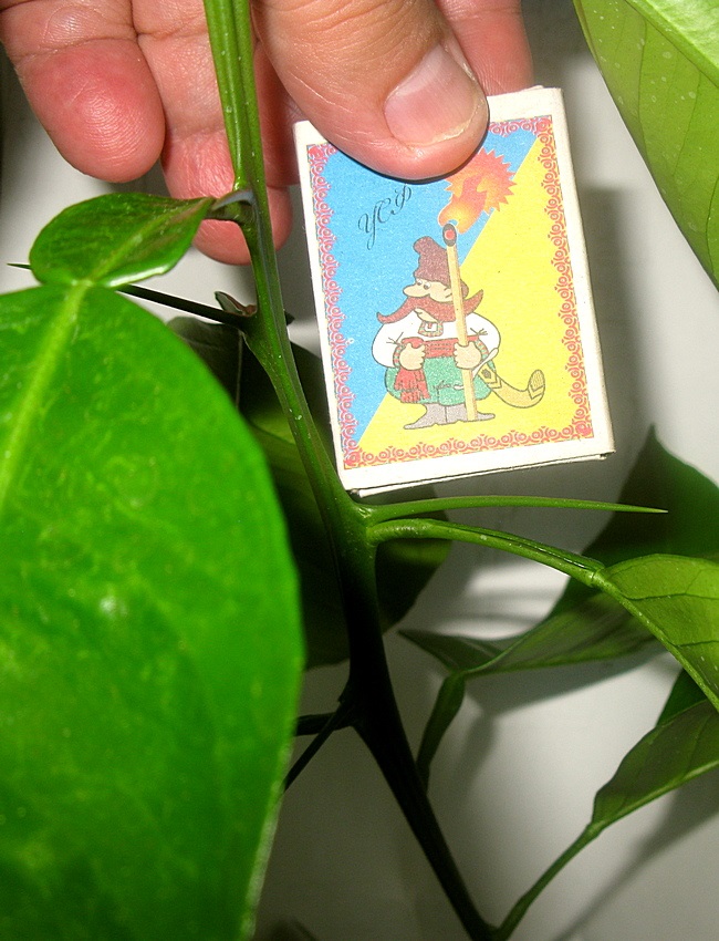 Вот теперь, благодаря черенку Саши (Bersagliero) появился и у меня "Тапёнок". Привит на сеянец апельсина.