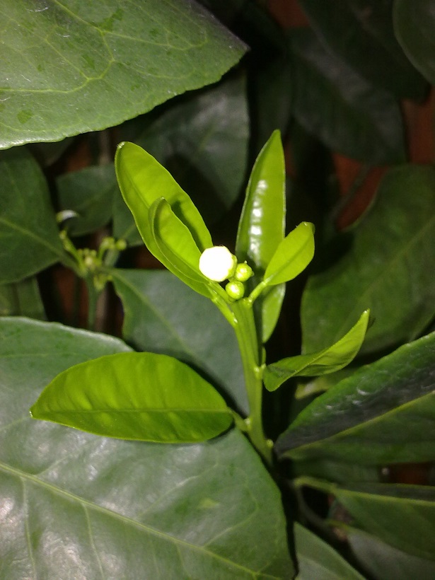 Цветы: среднего размера (2-3 см), белые, запах сладко-терпкий, интенсивный.
