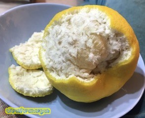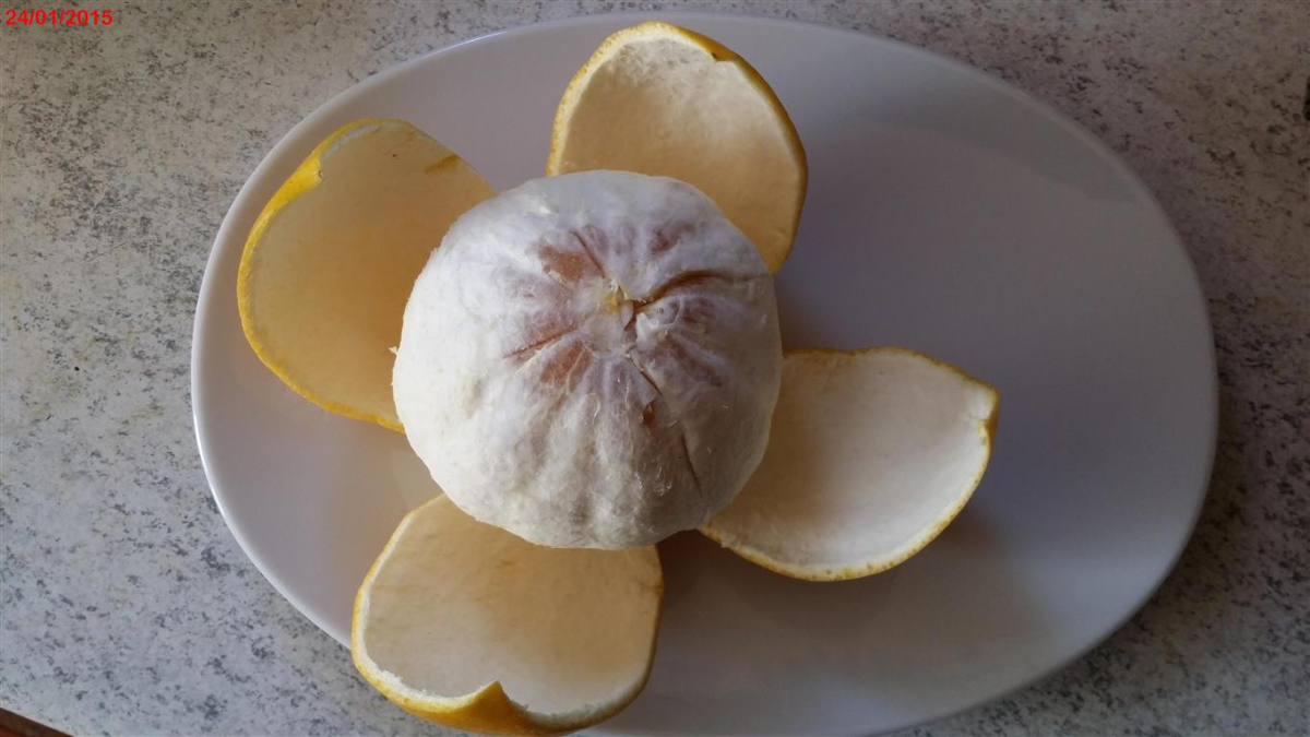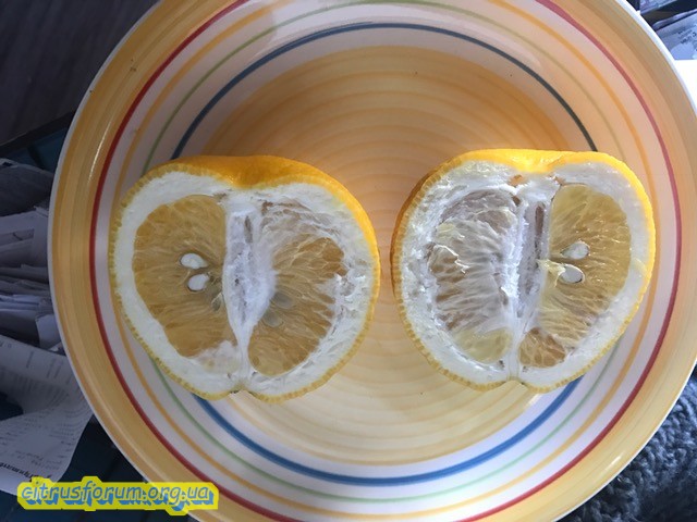 В конце января цвет стал жёлтым, как у апельсина, кислоты практически не было, горечь оставалась только в плёнках. Вкус в целом напоминает грейпфрут, ароматный, сладкий, хотя и несколько водянистый. Плоды хорошо чистились, в некоторых семян не было совсем, но иногда присутствовало до 10.