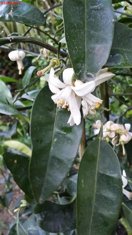 У меня он с 2003 года, из питомника Б.Восса в Гамбурге. Растение было от незрелого сеянца, прививка на понцирус. В саду около Парижа регулярно обмерзал при минус 9, хотя довольно быстро восстанавливался за лето. В 2006 году был переведён на юг Франции, зона 9б, где быстро вырос в высокое колоннообразное дерево с крупными удлинёнными листьями несколько напоминающими померанцевые, с разнообразными крылатками, от широких как у грейпа до небольших как у апельсинов.