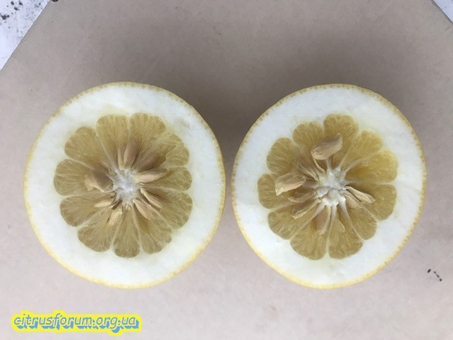По заметкам Александра(Самоделкин) постараюсь в этом году "вывесеть" этот грейпфрут до победного конца. В прошлом, сорвав его как только желтизна стала уверенно-насыщенной, сладости для полного удовольствия не хватило. Был вкусный, но кисло-сладкий грейпфрутовый вкус.