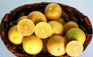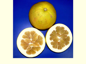 Ханна: раннеспелый (октябрь-декабрь) гибрид между помело Таити и Чeндлер. 12,6% сахара.