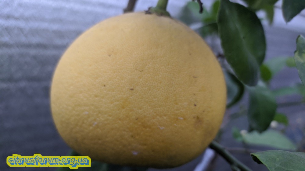 Цвет получился розовый, на вкус помело кислое, но не очень, пленочки жесткие с горчинкой, сока достаточно, присутствует интересный аромат, не грепфрутовый - описать сложно. Хочется чтоб присутствовал сахар, как-то без него грустно. Возможно плод еще не вызрел и не набрал сахара и красного пигмента. Подождем ещё немного и посмотрим какими будут два оставшихся плода.