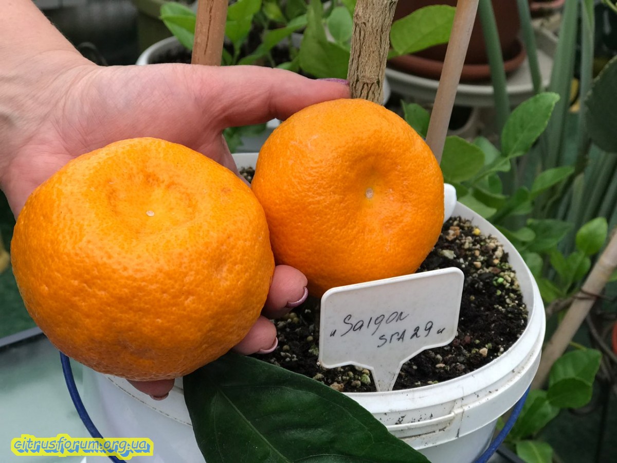 Общий внешний вид плода оценивается наивысшим, наблюдались дефекты в виде более мелких ребер и рубцов. Форма кончика плода с отступами, форма основания плода укорочена. Толщина кожуры средняя, цвет варьируется от желтого до оранжевого, упругость кожуры малая. Сальные железы, которые характерны для цитрусовых, также заметны, цвет альбедо белый. Мякоть самая тонкая, цвет в основном интенсивный оранжевый, очень сочная, имеет прекрасный вкус. Это образец безусловно, одного из самых больших фруктов, так как его средний вес составляет 188 г, а средняя длина составляет 87 мм., семена отсутствуют, или их очень мало найдено, ось плода полузаполненная.