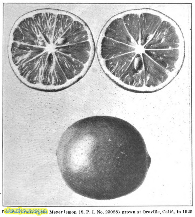 Деревья, не смотря на медленный рост, оказываются выносливее чем Лисбон или Эврика. Занимая то же положение в моем питомнике что и эти сорта, они (Эврика и Лисбон) потеряли несколько листьев во время сильного похолодания год назад, но деревья лимона Мейера не получили никаких повреждений ни листьев ни молодых приростов. Они заплодоносили на второй сезон после посадки и доказали очень высокое плодоношение. Плод имеет меньше косточек чем Лисбон или Эврика, имеет гладкую, перчаточную кожуру; в центр плода полностью отсутствует фиброзная ткань, содержит значительно больше сока чем другие лимоны которые я выращиваю ( у меня есть 7 сортов) и мы предпочитаем его любому другому сорту для употребления дома.