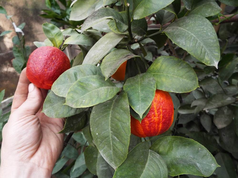 Привит на апельсин тарокко, корневая макрофилла. На подвое пандерозы окраска менее выражена, полоски почти незаметны. На аркобалене верхом привиты сангвинелли и сангвинелло - эксперимент по влиянию красного подвоя на усиление окраски плодов привоя