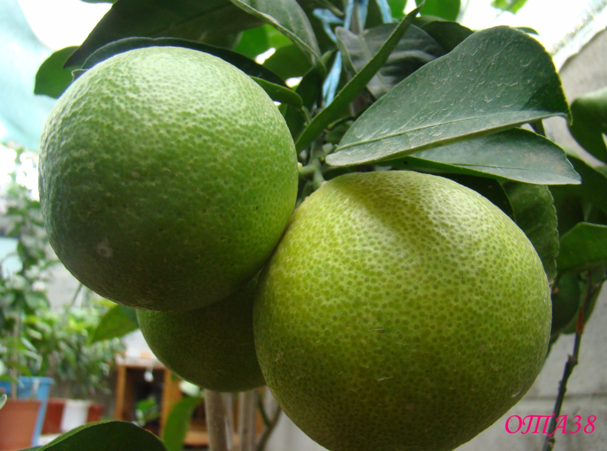 ОТА 38 самый пока доступный для цитрусоводов. Растение достаточно мощное, хорошо облиственное, колючек мало или они практически отсутствуют. Плоды шаровидной формы, больше напоминают небольшой апельсин. Мякоть ярко-оранжевая, сладкая и очень вкусная. Семян нет. Срок созревания - средне-поздний.