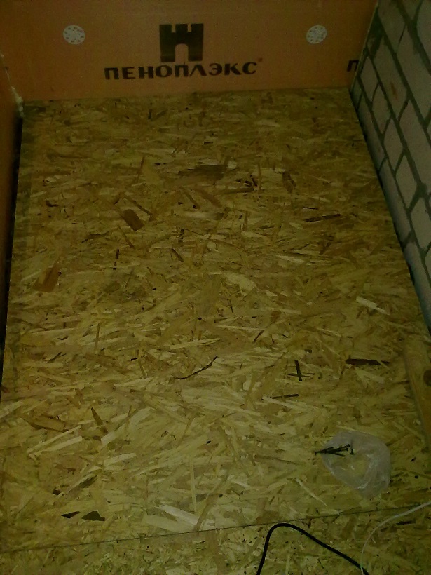 Утепление балкона практически закончили, сегодня сделали черновой пол. Подняли на 12 см, утеплили минеральной ватой и зашили OSB