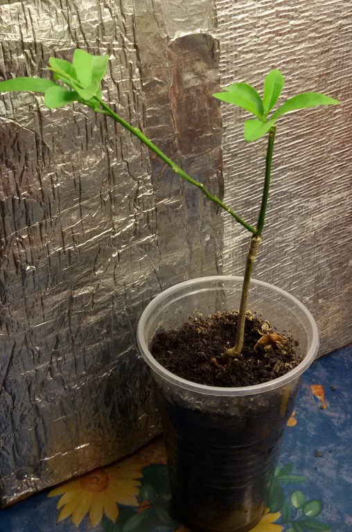 Осенняя прививка апельсина Sanguinello moscato Cuscunà nucellare 58-52F-1 на подвой макрофила. СИдела в тишине до декабря, потом выдала 2 прироста подряд))