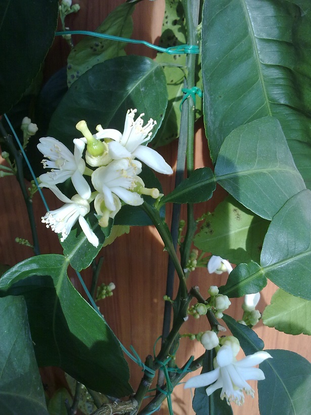 Также началось цветение грейпфрута, при этом не перестает гнать новые бутоны, хотя уже практически весь усыпан цветами