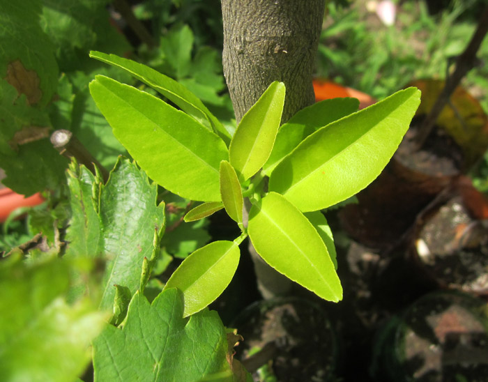 И такого же плана, как на первом подвое, вырос прирост на большом лимоне