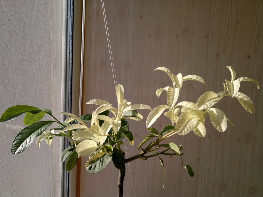 Растет кривенько, как придется, ветки тоже либо совсем белые, либо зеленые. Очень редко веточка была варьегатной, а заканчивается приростом с зелеными листочками. Надо бы такие обрезать, но пока не хочу, пусть наращивает шевелюрку. Эти Буддочки приехали (все 10 штук) залитые напрочь, причем не просто с мокрым грунтом, а с вытекающей водой из горшков. Практически гнилая корневая система и осыпающиеся листья. Из 10 штук только 3 имели приличный вид. Но я так сейчас понимаю, из переписки с форумчанами, что первоначальный приличный вид с листьями им не помог :-( Практически все Буддочки отсушили (сбросили) итальянские листья и наращивают потихоньку украинские.