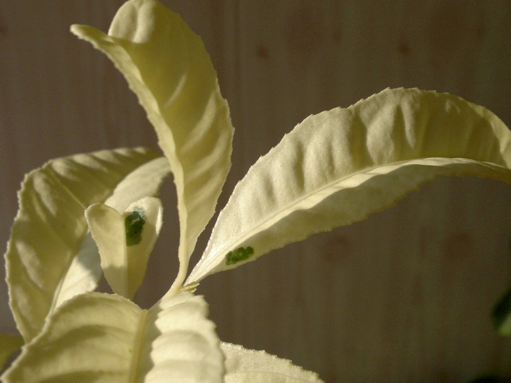 У моей РБ в последний прирост вызрело 5 веток-альбиносов, 1 одна ветка с еле заметной пестролистость и парочку небольших классических веточек.