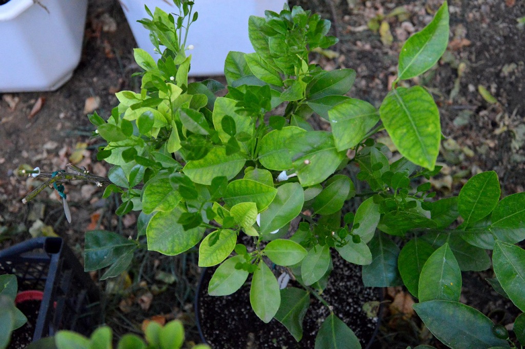 Каламондин переделанный в дерево сад, был очень хлорозный, пересадила в новый грунт с кокосовым субстратом и он начал отрастать красивыми листьями)