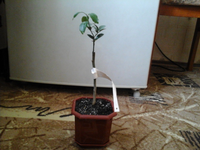 Helga писал(а):Fortunella crassifolia Meiwa SRA 711. На других сайтах этот клон с варьегатными листьями. Непонятно это пересорт или лист еще поменяет свою окраску. Пересадила сразу как получила. Корешки все здоровые, беленькие, но очень маленькие для горшка. Видно что недавно растение перевалено в этот горшок. А вот место прививки с одной стороны не покрылось каллюсом и образовалась дырка. Я опрыскала это место трихофитом и обмотала прививочной лентой. Кто получил такую же Мейву покажите, пожалуйста.