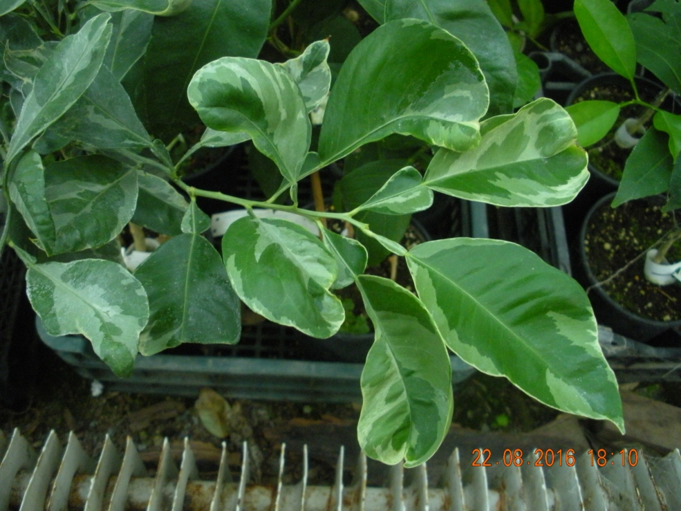 Под рукой оказались фото листьев померанца Bizzaria varyegata.