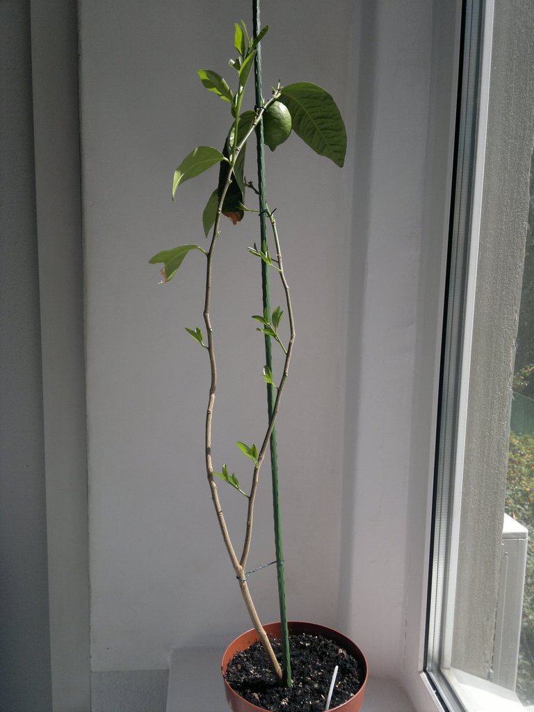 Прижилась у меня прививка гибрида Citrus Clementina x Citrus Sinensis ОТА 38. Два раза сбрасывала молодой прирост. И сейчас остался лишь один молодой листик.