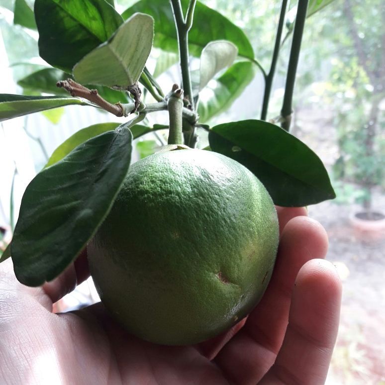 C. grandis "Timor" , по некоторым источникам карликовый сорт помело,первый плод дал завязать ведь растению 3 года, корневая отличная, в году 2-3 прироста. Пока карликовость подтверждается, посмотрим теперь каким выростет плод.