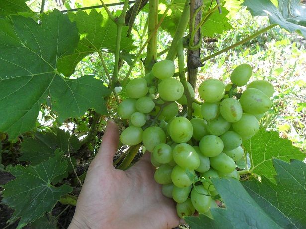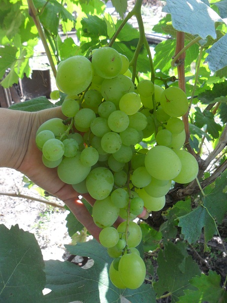Всем добрый день!!!Вот такой виноград растет у моего свекра. Очень бы хотелось узнать как их зовут))или хотя - бы в сторону каких сортов посмотреть для сравнения. На счет сроков, размеров - возможно они были бы крупнее и созревали бы пораньше. Свекор им внимания не уделяет, а меня хватило только на обрезку осенью и несколько раз прищипнуть пассынки, между кустами расстояние, наверное, не более 1,5м, растут 4 куста подряд. Укрывные, но в этом году он их не успел укрыть,так зиму и простояли, весной ,на удивление, обмерзших веток не было.