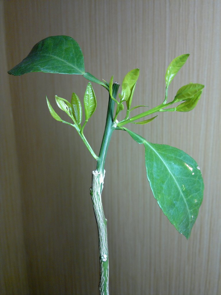 На предыдущей страничке показывал проснувшуюся прививку Shiranui. После того, как ее прирост вырос до 4-5 сантиметров, новые листочки постепенно покоричневели и отвалились. А потом отпала и веточка. Время-от-времени у меня такое происходит в тепличке в процессе срастания. Причину(ы) установить не смог. Но то такое... если привой жив и старые листья не отпали, то отучаю от теплички и ожидаю нового прироста уже "на воле". Так сделал и в этот раз, а прогресс фиксировал раз в 3-4 дня (даты в названиях файлов). Не получилось вставить фото в хронологическом порядке