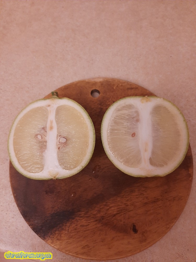 Мякоть сочная, кислая, лимонная, среднезернистая. Цедра ароматная, бергамотовая, маслянистая, с горечью.