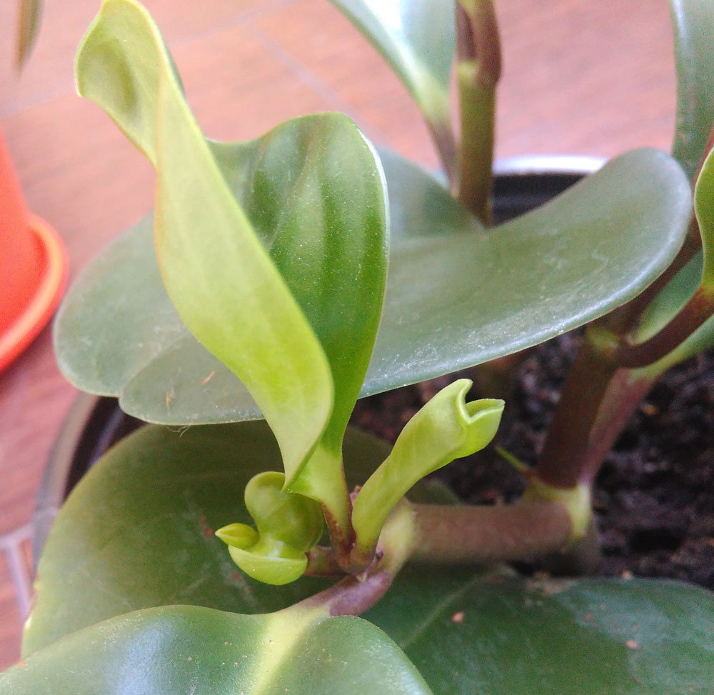 - Пеперония росла как-то очень странно. Молодые листья были деформированы и каждый следующий листок был меньше предыдущего, замирал в развитии.