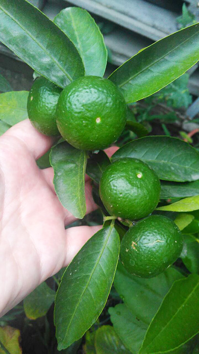 Цветет очень обильно с марта по апрель. Цветы белые, мелких или средних размеров, как одиночные так и собранные в соцветия, очень ароматные. Листья продолговатые, темно-зеленого цвета. Плоды разной величины, созревают в конце ноября - начале декабря. Кожица плода грубая (5-10 мм), бугристая, количество сегментов 10-12, встречаются семена, вкус сладко-кислый, сока хотелось бы побольше.