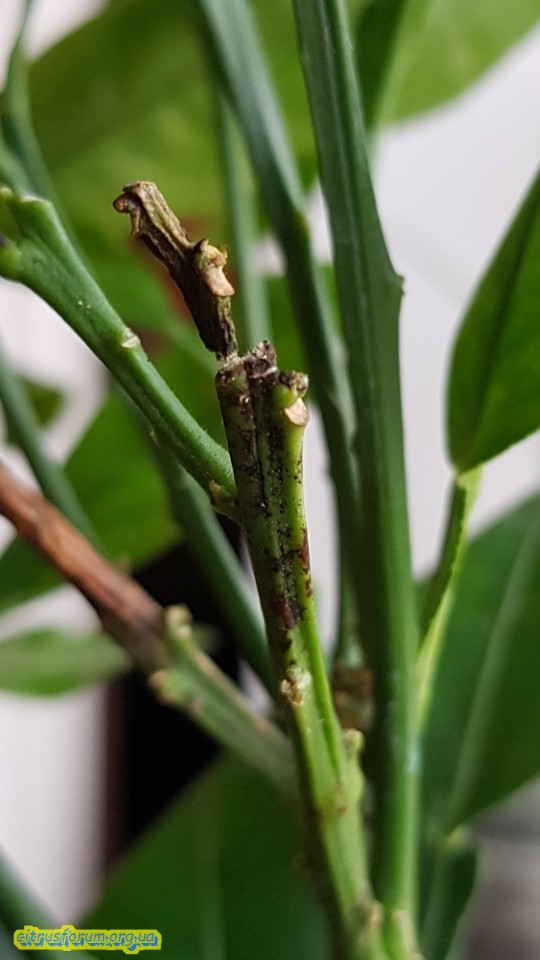 Здравствуйте, уважаемые коллеги! Получил сегодня апельсин. На одной из веток обнаружены черные пятнышки. Веточка маленькая и без побегов. Стоит ли беспокоиться?