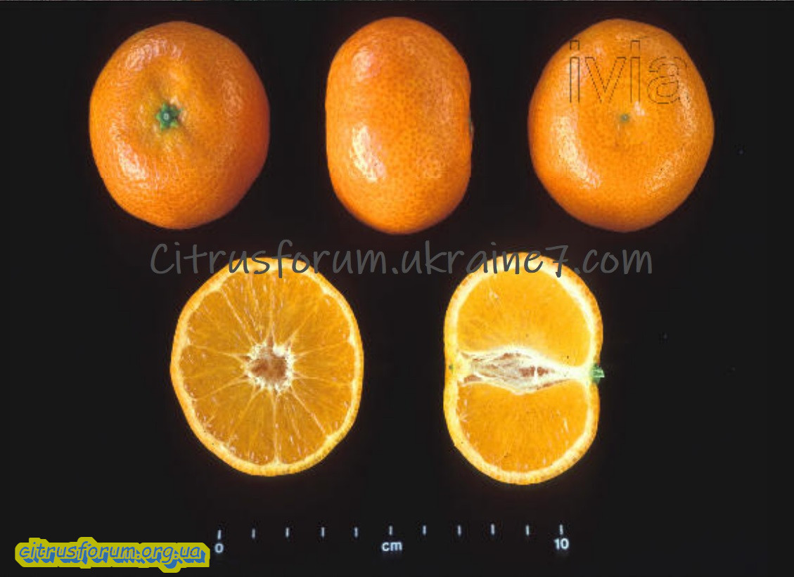Його плоди дрібні та середні, зазвичай важать від 50 до 70 грам, без кісточок і мають гладку, тонку шкірку, інтенсивного помаранчевого кольору, яка легко чиститься.