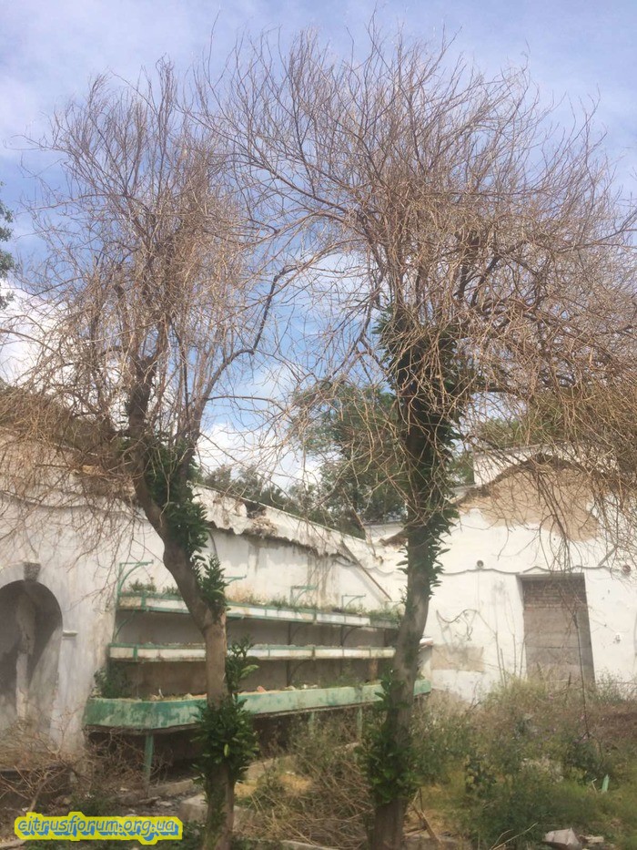 это в санатории меллас теплицу разломали осенью, собираются на ее месте что-то строить, и вот с осени они простояли без укрытия ,апельсины пока стоят,может до осени