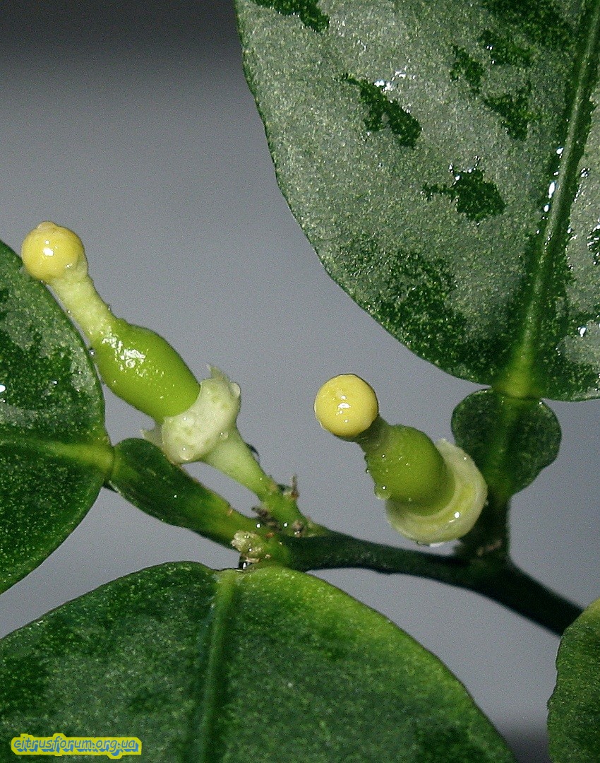 Апельсин растянул своё цветение, из-за холодной весны и начала лета. Т.ч. теперь и цветём, и завязываем, одновременно.