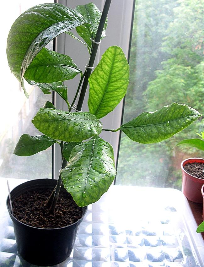 Далие грепфрут Marsh Seedless, этот никак не вычухается. Уже второй раз гонит побег, затем всё осыпается, кроме одного двух искарёженых листов. Подозреваю загвоздку с медью, либо фосфором. Пока в стадии усиленного присмотра.