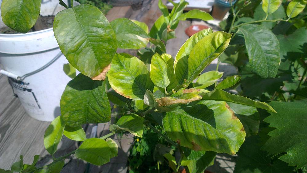Прошу мнения со стороны. Есть вариегатный лимон Фолиис. До недавнего времени все было хорошо. Вынесен на улицу со всеми остальными и адаптирован к солнечным лучам. (тень-полутень-солнце). Было внесено удобрение Компо в конце мая, вроде не переборщил. Устраивал душик вечером почти ежедневно. Дождей у нас не было с июня по начало июля. Но вот пару недель как пошли дождички и в основном, днем. В это же время листья понемногу начали усыхать (как на фото) не резко, а постепенно. Вот и ломаю голову, ожег или все таки добриво не понравилось. Хотя есть молодой побег чуть ниже по стволу, который выглядит отлично. Залив маловероятен. Все остальные растения в идеальном состоянии, вариегатный Волкамериано в том числе. Что думаете по этому поводу?